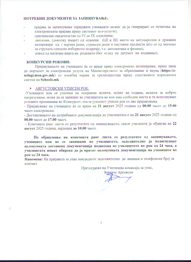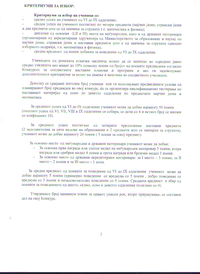 (9 ученика, 4г.тр. – 55 минимум поени – 1 паралелка)