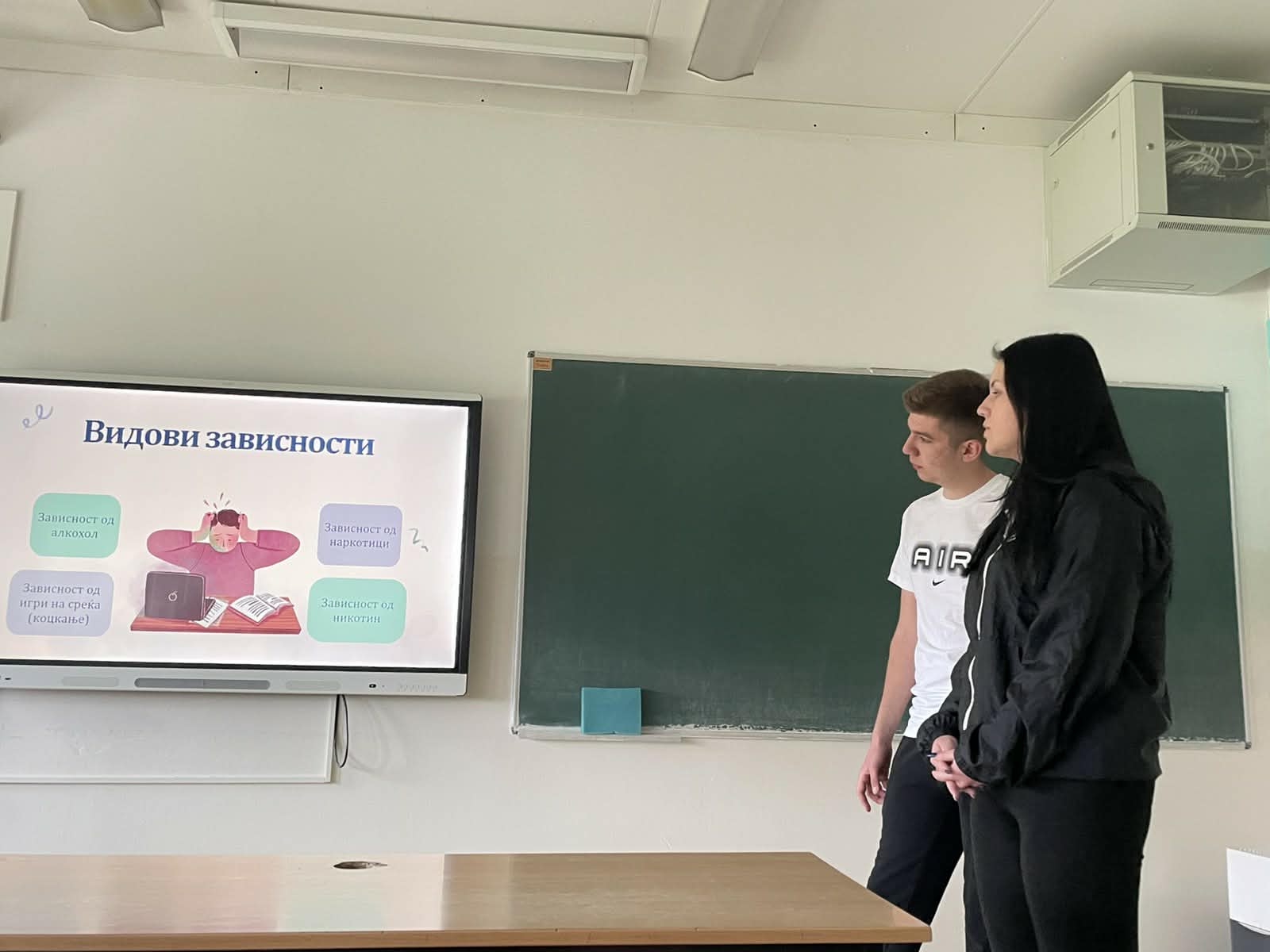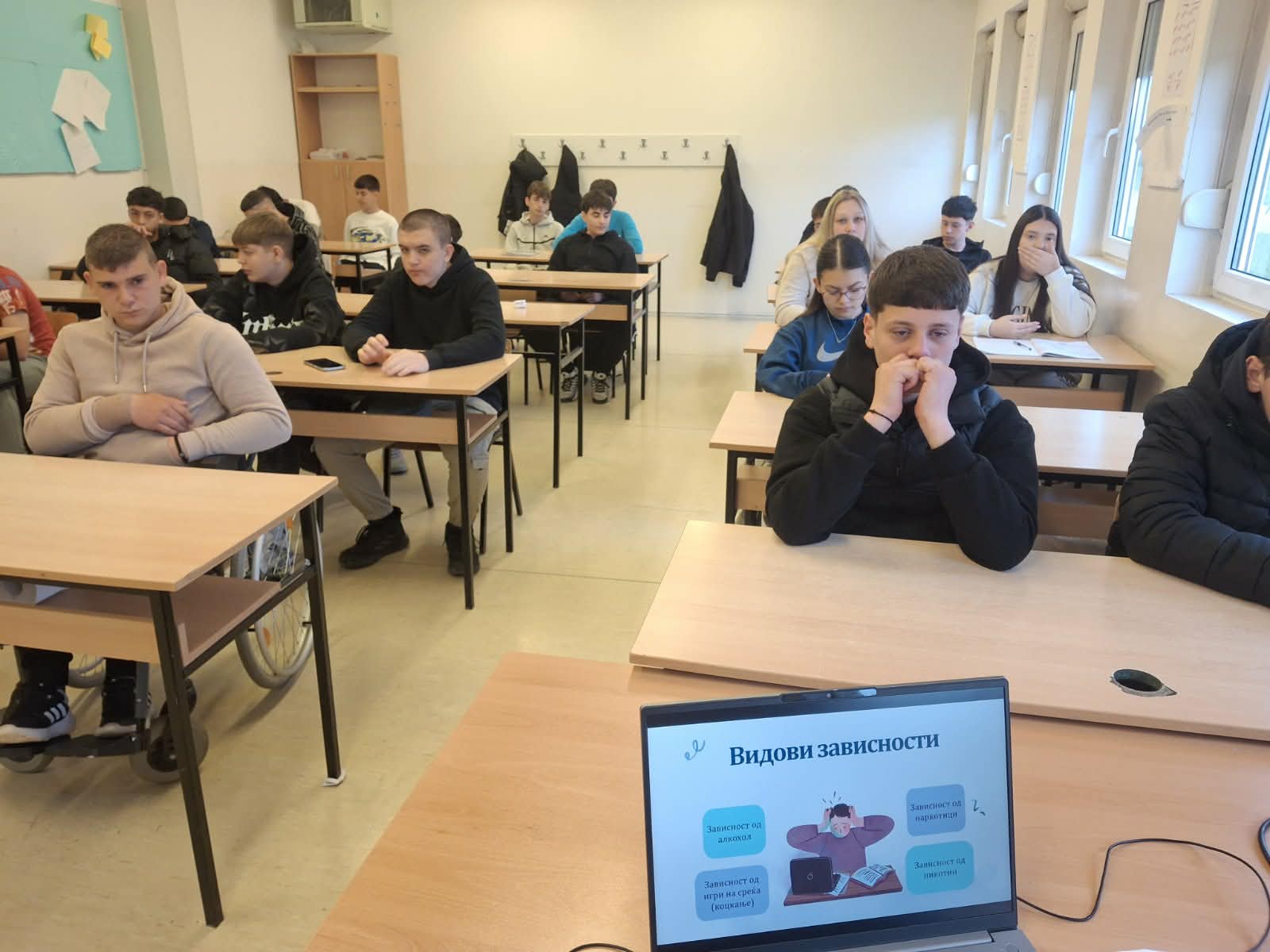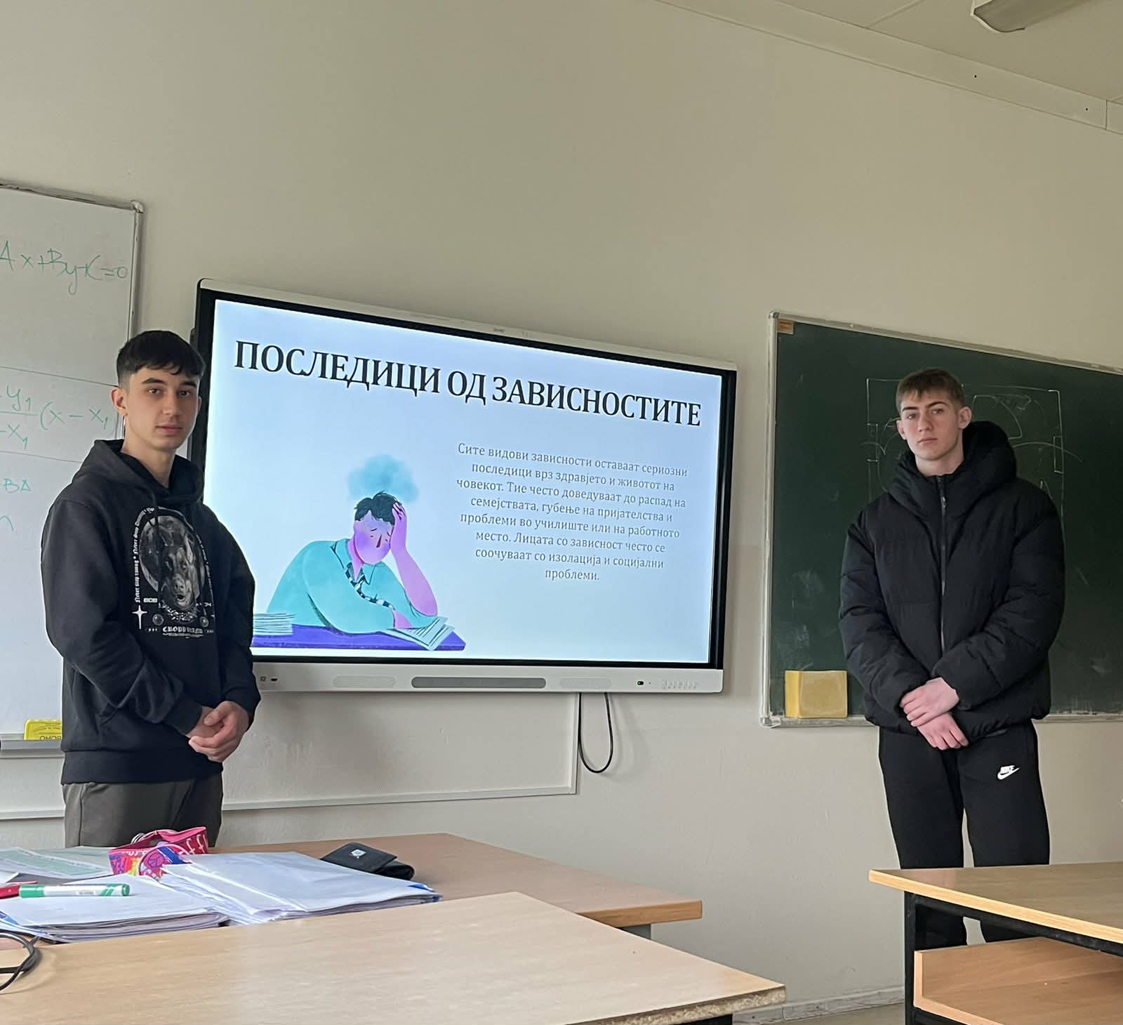 Во рамки на Развојната цел-Ученички иницијативи од Годишната програма за работа на училиштето, учениците од Ученички совет изработија презентации на различни теми од секојдневието и општеството кои најпрвин ги мапираа како проблеми со кои се соочуваме во секојдневието, а потоа врз основа на добиените одговори во соработка со училишниот психолог изработија Акциски план и теми за едукативни презентации кои започнаа со реализација на класните часови. Втора презентација беше на тема: Болести за зависност затоа што достапноста на цигари, алкохол, разни психоактивни супстанци и злоупотреба на истите постануваат проблеми со кои се соочуваат младите во секојдневието. Учениците продискутираа и за обложувалниците и казината како и за прекумерно користење на мобилни телефони за социјални мрежи, игри и др.