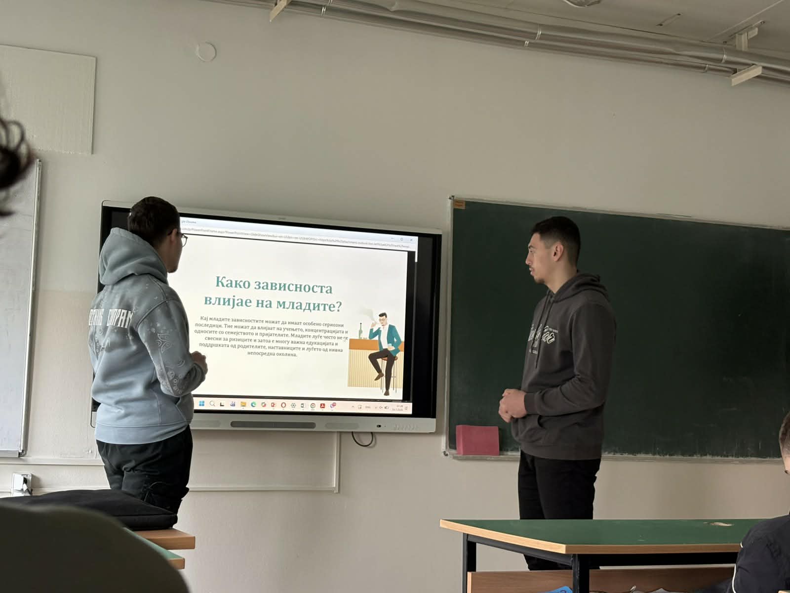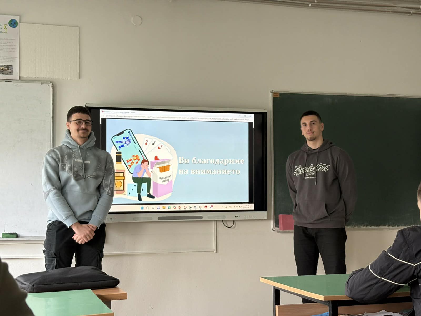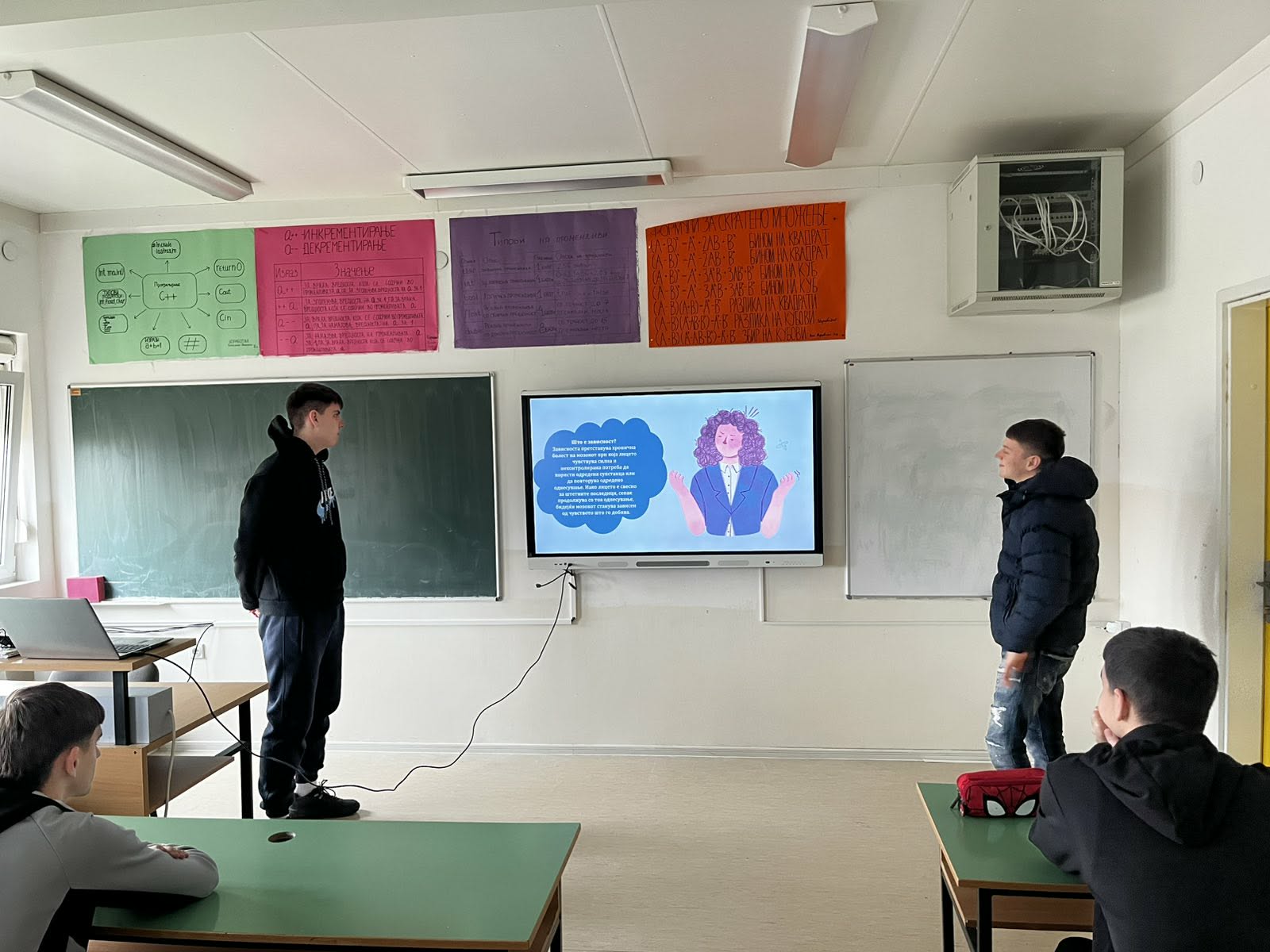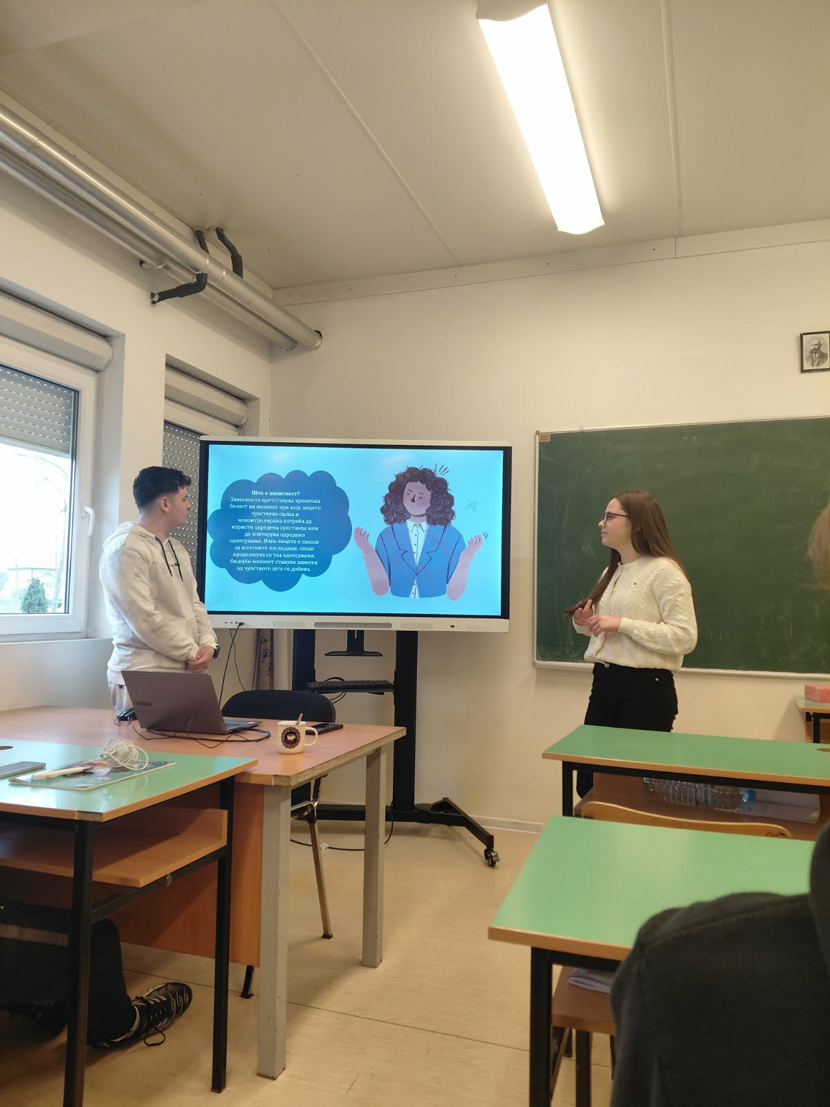 Во рамки на Развојната цел-Ученички иницијативи од Годишната програма за работа на училиштето, учениците од Ученички совет изработија презентации на различни теми од секојдневието и општеството кои најпрвин ги мапираа како проблеми со кои се соочуваме во секојдневието, а потоа врз основа на добиените одговори во соработка со училишниот психолог изработија Акциски план и теми за едукативни презентации кои започнаа со реализација на класните часови. Втора презентација беше на тема: Болести за зависност затоа што достапноста на цигари, алкохол, разни психоактивни супстанци и злоупотреба на истите постануваат проблеми со кои се соочуваат младите во секојдневието. Учениците продискутираа и за обложувалниците и казината како и за прекумерно користење на мобилни телефони за социјални мрежи, игри и др.